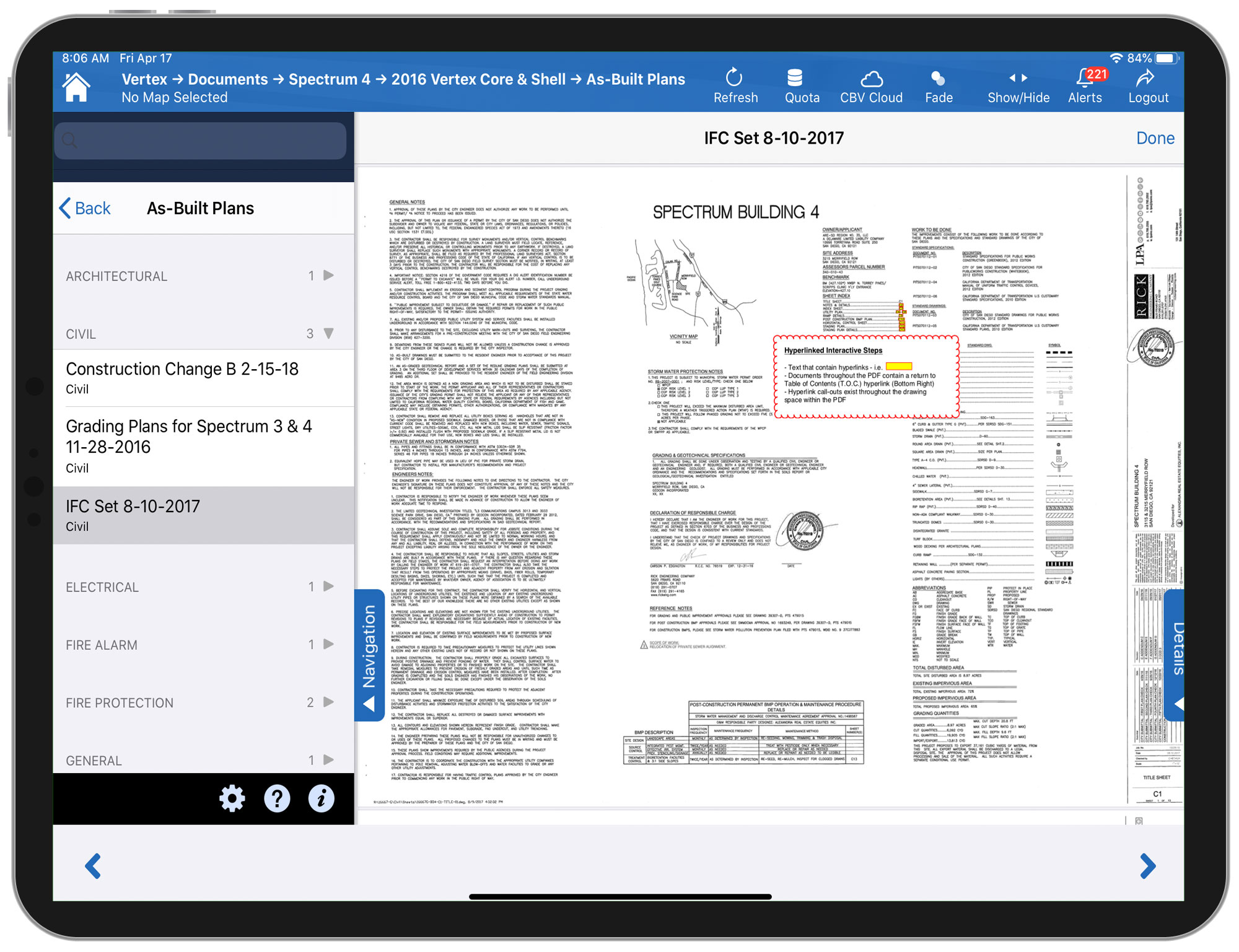 Scroll through As-Built plans, Equipment information, Submittals and Testing Documentation